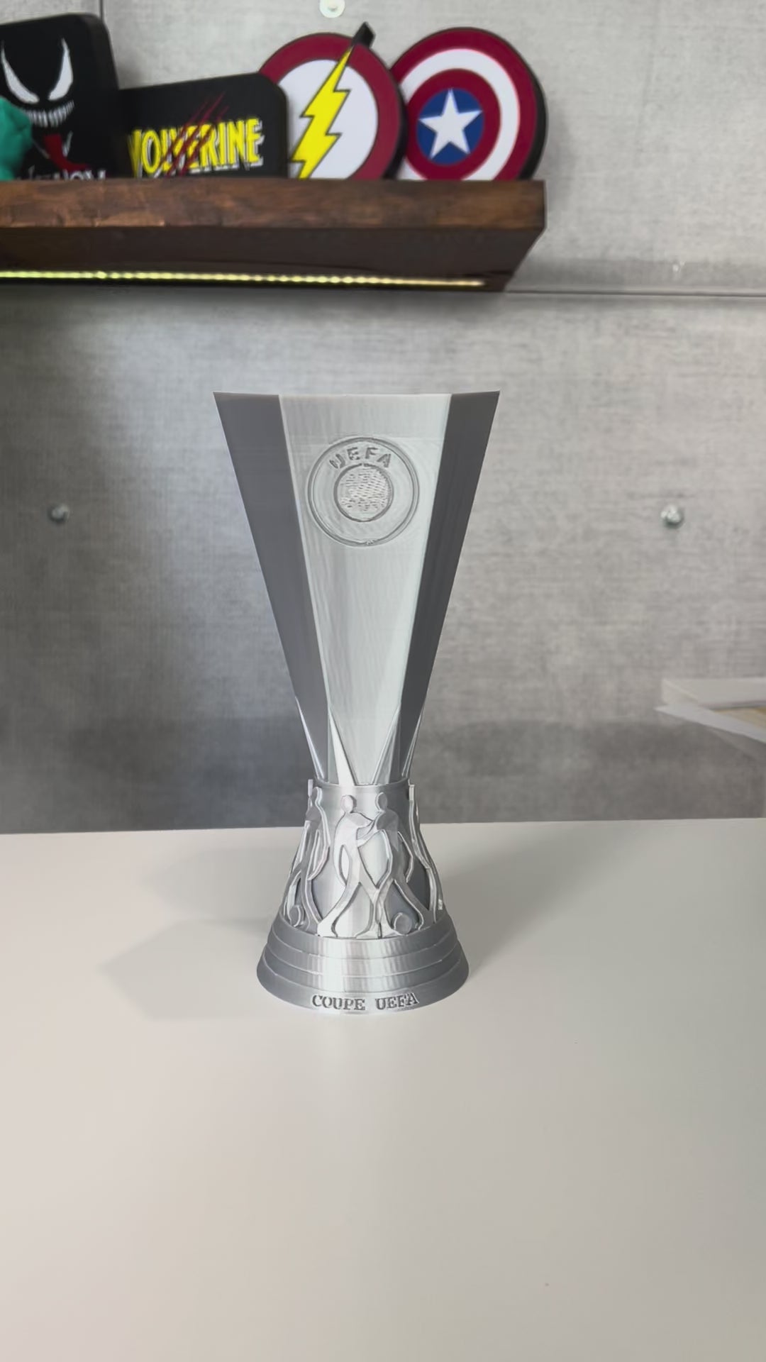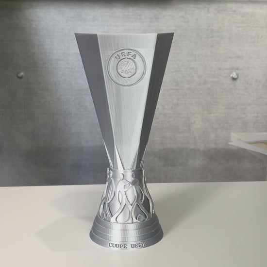 A collectible decoration that brings the iconic UEFA Europa League trophy to your space. With an elegant design and details that refer to the original cup, it is an ideal choice for collectors, football enthusiasts or as a decorative element in an office, living room or room.